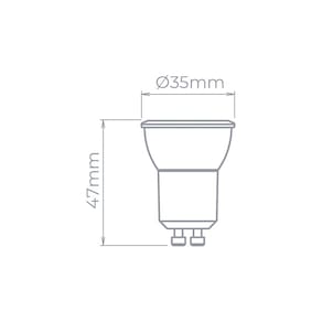 Frequência: 50/60 HzDimensões AxLxP (mm): 47x35x35Garantia: 2 anos junto ao fabricanteVoltagem: BivoltFator de Potência: > 0,4IRC (Índice de Reprodução de Cor): >80Potência: 3WSoquete: GU10Vida Útil: 25.000 horasModelo/Tecnologia: LEDTipo: Mini DicróicaDimerizável: NãoÂngulo de Abertura: 36°