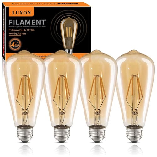BULBO EDISON DIMMABLE Atualize o driver regulável com a lâmpada totalmente regulável disponível, que é sem cintilação, silenciosa e possui recursos de escurecimento suave de 0 100 com todos os dimmers. A lâmpada led edison totalmente regulável permitirá que você crie o equilíbrio perfeito de luz vintage ESTILO VINTAGE ANTIGO Preserve o estilo retrô das lâmpadas tradicionais de Edison, esta lâmpada certamente adicionará personalidade a qualquer ambiente Parece com as lâmpadas edison convencionais, mas com a vantagem do LED baixo calor, economia de energia, longa vida útil LUZ QUENTE AMBER A lâmpada vintage emite uma bela iluminação ambiente quente e desda em vez de uma iluminação esmagadoramente brilhante, faz com que seu quarto pareça mais agradável, aconchegante e mais convidativo ECONOMIZE SEU DINHEIRO As lâmpadas de filamento de LED substituem a lâmpada incandescente de 40W por LED de 4W, economizando mais de 90 na conta de luz de eletricidade. Feito pelo exclusivo FILAMENTO DE OURO resistente oferece 20.000 horas de vida útil, você pode usar por 18 anos com base no uso 3 horas por dia Marca: Não Informado