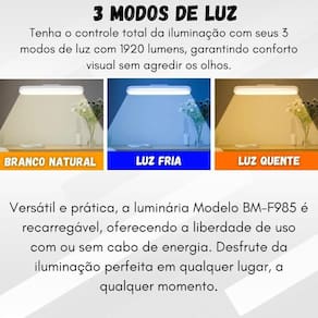 Lampada Luminaria Led Recarregável Magnética Multifuncional