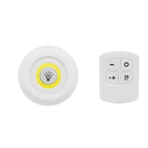 A luminária de led modelo spot sem fio, veio para ajudar nos cantinhos com pouca luz. Com o led ultra brilhante, garante brilho na luminosidade de 3 vezes mais, comparado com ao led normal. Controle de 2 vias: pelo controle remoto que permite de uma distância de até 4 metros, como acionar o botão liga/desliga, com um toque no interruptor da lente da luz do produto. Fácil instalação, vem com adesivo dupla face para fixar em qualquer lugar que queira iluminar. Tanto o spot como o controle usam pilhas aaa não incluídas . Produto ideal para área interna, cozinha, sala, quarto, teto, armário, guarda-roupas, gabinete, balcão, prateleira, escadas, porão, ou locais escuros que você possa precisar de iluminação forte por alguns minutos de vez em quando.