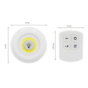 Especificação: Led de 3we Brilho de 150 lumens Fixação com 3mtape stick on Luminária usa 3 pilhas aaa Controle remoto usa 2 pilhas aaa Aciona por toque na luminária ou pelo controle remoto Distância de acionamento pelo controle de até 4 metros