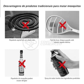 Construída em chips de LED emitem azul atrativo de raios ultravioleta que atraem os mosquitos. Área de cobertura ampla.