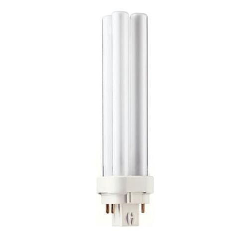 Lâmpada MASTER PL-C 18w 840 Branco Frio 4p PhilipsA MASTER PL-C é uma lâmpada fluorescente compacta de média potência, normalmente usada em aplicações tipo downlight em lojas, hotéis e escritórios. A tecnologia desenvolvida pela Philips garante o excelente desempenho da aplicação, proporcionando mais luz e eficiência do que as lâmpadas similares com formatos/ curvaturas diferentes. A versão de dois pinos foi projetada para uso com reator eletromagnético e é fornecida com um soquete de engate rápido.Avisos e Segurança Use exclusivamente com reator eletromagnético As características técnicas e elétricas da lâmpada são influenciadas pelas condições de operação, por exemplo, a temperaturaAmbiente e a posição de funcionamento. Informações geraisCasquilhoG24q-2 Vida útil até 10% de falhas (Nom.)6500 hVida útil até 50% de falhas (Nom.)10000 hCódigo da cor840 TCC de 4000K (841)Fluxo luminoso (Nom.)1200 lm