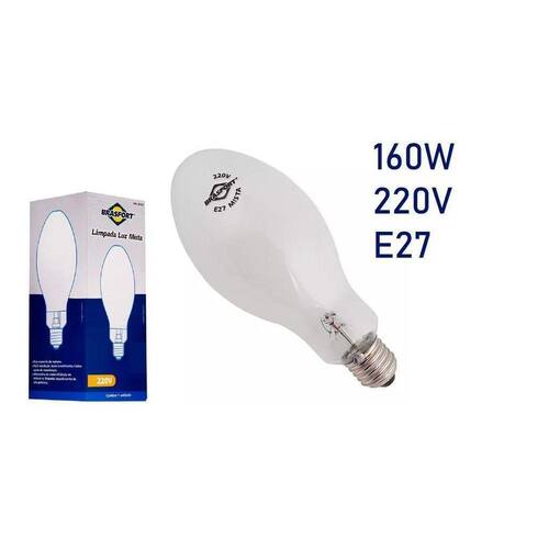 Esta é uma lâmpada de descarga que requer alguns minutos para atingir a sua luminosidade total após ser ligada. E se for desligada, requer algum tempo para acender novamente.Produto: Para uso interno ou externo em instalações comerciais, industriais, áreas de lazer, pátios e etc.Bulbo de vidro com vapor de mercúrio e filamento de tungstênio interno e soquete de latão.Pode ser ligada diretamente na rede elétrica.Marca: BrasfortEspecificações Técnicas:Referência: 8172Temperatura de cor: 4000K Branco Neutro Fluxo luminoso: 4800 lúmensVida Média: 8000 horasPotência: 160WTensão: 220VSoquete: E27Dimensões: Altura: 17cm Largura: 7,5cm