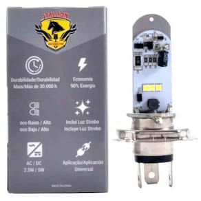 Lampada de moto stallion led h4 5w com strobo 6500k sem reator st-flash-6 Lampada de moto stallion led h4 5w com strobo 6500k sem reator st-flash-6Lâmpada de farol de led com funções de farol alto e farol baico, além da função strobo (acende acionando duas vezes o farol alto)Este produto é de fácil instalação, não exige que mude a estrutura de sua moto, pois foi confeccionado seguindo as especificações do produto original, para encaixe e funcionamento perfeito.Aplicação: - fazer 250 - cbx 250 twister - cb 250f twister - falcon - cg fan 125 - ml 125 - titan 125 - titan 150 - titan 160 - bros 125 - que utiliza lâmpada h4 única - bros 150 - que utiliza lâmpada h4 única - nx 150 - cbx 150 - nx 200 - xr 200 - que utiliza lâmpada h4 - cbx 200 E todos os modelos de motos que utilizem lâmpadas h4 Dados técnicos: - temperatura6500k. - lampada de led. - consumo: 2.5w em farol baixo, 5.0w em farol alto. - durabilidade: 10 x mais que a comum. - comparação: equivalente a uma lâmpada de 35w halogênea. - motos de alta e baixa cilindrada. - maior segurança na sua condução. - led de alta potência. - modelo: h4. - tensão: 12v. - farol alto e baixo. - função strobo (acende acionando duas vezes o farol alto) - uso em corrente contínua e alternada.Detalhes: - alta qualidade - 10x mais durabilidade - baixo consumo de energia - economia de 86-93% de energia comparado a lâmpada halogena 35w/35w - facilita a visualização de placas de sinalização - pode chegar a mais de 10.000 mil horas de uso sem perder a luminosidadeMedidas: - comprimento: total 9,5cm / somente lampada 5,5cm - largura: 4,5cm base / 2cm lampadaImportante: - garantia de 3 meses. - valor referente a uma unidade. - imagens reais do produto. - recomendamos que a instalação seja feita por profissional especializado e não nos responsabilizamos pelo mau uso do produto. - para motos com correte continua ou alternada