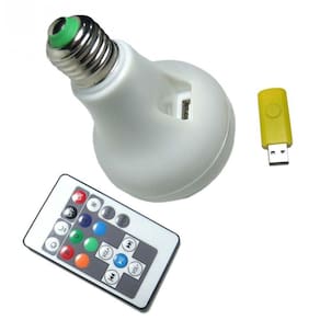Características: Cor: Rgb Lâmpada bluetooth com controle remoto Com pendrive incluído, no qual conectado a um computador você insere as músicas e conectar na entrada usb da lâmpada Bocal: E27 é o bocal comum que temos em casa. Lâmpada possui a capacidade de receber áudio via bluetooth. Assim você consegue reproduzir suas músicas e controlar as luzes por um controle remoto que já vai incluso. Voltagem: AC 180-240v / 50/60hz Potência total: 7w Potência da luz: 3w Resposta de frequência bluetooth: 2.4ghz-2.48ghz Distância de funcionamento: 10m Distância limite para o controle: 5 a 8m Controle remoto utiliza bateria 3v cr2032