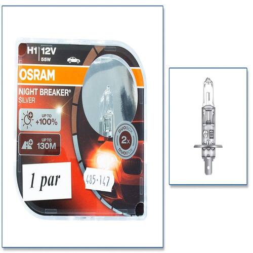 Com a NIGHT BREAKER SILVER, a OSRAM oferece uma lâmpada automotiva de halogênio de desempenho com vida útil otimizada. OSRAM NIGHT BREAKER SILVER gera até 100% mais brilho em comparação com o padrão legal mínimo e um feixe que é de até 130 metros de comprimento. Isso permite que você veja sinais de trânsito, obstáculos e perigos mais cedo e o motorista tenha mais tempo para reagir. Além disso, essas lâmpadas automotivas têm uma relação preço-desempenho convincente e um design moderno com uma atraente tampa prateada. A escolha perfeita para motoristas que exigem muito desempenho e vida útil.