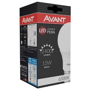 DIMENSÕES - Dimensões: 60x122 mm. Tecnologia de iluminação: LED | Voltagem: 127/220v | Cor da luz: Branco-frio | Modelo detalhado: Pera LED 15W Branco Frio E27 6500K 276151370 | É giratória: Não | Com Wi-Fi: Não | Com impacto positivo: Sim | Fluxo luminoso: 1350 lm | Tipos de soquete: E27 | Forma: Pera | Ângulo de abertura: 200 | É dimerizável: Não | Materiais: Alumínio | Ambientes: Interior | Vida útil: 25000 h | Potência: 15 W | Unidades por kit: 1 | Formato de venda: Unitário | Com sensor de movimento: Não | Com Bluetooth: Não | Com alto-falante: Não | Inclui controle remoto: Não | Com função repelente: Não | Temperatura de cor: 6500 K | Fator de potência: Wats | Assistentes virtuais compatíveis: Nenhum | Aplicações inteligentes compatíveis: Nenhum | EmbalagemLargura-cm: 12 | EmbalagemAltura-cm: 11 | Modelo: Pera LED 15W | EmbalagemComprimento-cm: 19 | Cubagem: 0.002508 | Peso Líquido: 0.0000 | Marca: Avant | Dias Fornecedor: 0 Ean: 7899452018687