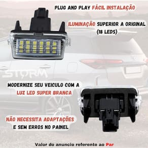 Par Lâmpada Luz De Placa Toyota Sw4 Ano 2016 A 2022 Hillux A lâmpada de luz de placa para Toyota Sw4 é perfeita para quem busca qualidade e durabilidade. Compatível com os modelos Toyota Sw4 dos anos 2016 a 2022, esse par de lâmpadas super led proporciona uma iluminação super branca, garantindo uma melhor visualização da placa do veículo. Essas lâmpadas possuem 18 micro leds integrados, o que garante uma maior intensidade de luz e uma vida útil estimada de 50 mil horas de utilização. Além disso, elas são à prova d'água, o que as torna ideais para enfrentar qualquer condição climática. A instalação é simples, porém recomendamos que seja feita por um para garantir o melhor resultado. As lâmpadas são novas e lacradas, garantindo a qualidade do produto. Principais perguntas: P. Necessita adaptação para instalar? R. Não, as lâmpadas são compatíveis com os modelos Toyota Sw4 dos anos 2016 a 2022 e não necessitam de adaptação. P. Acusa algum erro no painel do carro? R. Não, as lâmpadas são compatíveis e não acusam erros no painel do carro. P. Anúncio é referente a uma unidade ou ao par? R. O anúncio é referente ao par, ou seja, inclui o lado direito e o lado esquerdo. P. Qual a condição do produto? R. O produto é novo e lacrado, garantindo a sua qualidade. Tenha a tranquilidade de comprar com quem oferece o melhor atendimento. Nossa equipe está sempre disponível para tirar suas dúvidas antes e depois da compra. Conte conosco! Invista em qualidade e durabilidade para a iluminação da placa do seu Toyota Sw4. Compre o par de lâmpadas de luz de placa super led e garanta uma melhor visualização e segurança. Marca: Não Informado