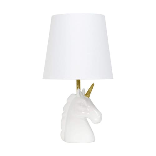 Simple Designs LT1078-WHT Candeeiro de mesa brilhante unicórnio brilhante, dourado