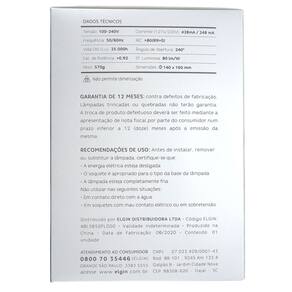 As lâmpadas Super Bulbo LED de Alta Pôtencia da Elgin são próprias para a substituição das lâmpadas incandescentes ou fluorescentes compactas. Com baixo consumo de energia, economiza até 85% de energia, longa vida útil. Características: Equivale a uma lâmpada incandescente comum de 240W e fluorescente 69w Produz luz brilhante e suave, próprios para iluminação casa, escritório e exposição Não contém mercúrio e Não emite infravermelhos Não emite ultravioleta Fator de potência: FP0,92 IRC: 80 R90 Temperatura: 6.500k branca Fria Fluxo Luminoso Lm : 4000 Frequência: 50/60Hz Eficiência luminosa: 80 lm/W Ângulo de Abertura: 240° Corrente 127V/220V : 428mA/248mA Não permite dimerização Certificada pelo INMETRO Altura: 19cm, Diâmetro: 14cm Vida útil: 25.000h Tensão: 100-240v Ean: 7897013585685