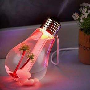 Lampada umidificador climatizador aromatizador de ar luz led Umidificador aromatizador de ar e luminária em formato de lampada, com uma pequena praia dentro. Conexão padrão usb. Pode ser usada na tomoda se utilizada adaptador de tomada bivolt Não fazemos o envio do adaptador usb Modo de uso Apos colocar as pedra, coqueiro e agua dentro da lampada, feche bem encaixado vire a lâmpada de cabeça para baixo para que o filtro absorva a agua e desvire em seguida. Então ligue numa conexão usb ou tomada será necessario adaptador de celular ou conexão usb . Não fazemos o envio do adaptador usb Para ligar o umidificador, aperte o botaão uma vez. Para desligar o umidificador aperto botão uma vez. Para ligar e/ou desligar os led aperte o botão e precione, até a led apague/acenda. Para mudar as cores de modo automático aperta 2 vezes seguidas rapidamente se não for rápido não funciona. dessa forma mudará de cor automático. Se o umidificador desligar por apertar devagar sem querer. Basta liga-lo novamente. Informações tecnicas - voltagem: 5v usb precisa de adaptador de usb tipo o de celular, Não fazemos o envio do adaptador usb - corrente em amperagem mínima do carregador: 300ma - 400ma - recomendado 1a - potência: 1,5 - 2w - capacidade de àgua: 400ml - capacidade de névoa: 25ml/h - tempo: 6h aproximadamente - tamanhos: 153mm x 88mm Incluso no pacote 01 filtro de 14cm 01 saco com pedras e 1 coqueiro 01 lampada de plástico reservatório de 400ml 01 base umidificadora com ligação usb Homologação Anatel: 136132205567 Ean: 7895180600484