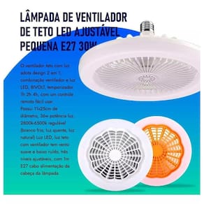 Lâmpada Ventiladora de Teto: Design Pequeno e E27 30W Mini ventilador de teto ajustável com luz de led.