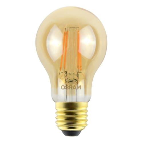 LAMPADA VINTAGE LED CLA40 5,5W 2500K BIVOLT E27 OSRAM Ficha técnica do produto Código do Fabricante - 7014554Produto - CLA40Potência nominal - 5.5WEquivalência - 45WTensão nominal - 100-240VFluxo luminoso- 560Eficiência em lm/W - 102Temperatura de cor- 2500KÍndice de Reprodução de cor (IRC) - >80Fator de Potência - =0.5Base - E27Vida útil - 15.000hDimerizável - NãoTemperatura de operação - -20° + 45°CGarantia - 3 anos Áreas de Aplicação Aplicações decorativas residenciais ecomerciais. Restaurantes e Hotelaria Iluminação aconchegante Design Vintage e elegante Características e Benefícios LED filamento Acabamento em vidro 90% de economia de energia Não aquece o ambiente Garantia de 3 anos Retrofit de lâmpadas incandescentes