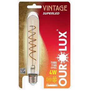 Lâmpada Vintage Led Tubo T185 Spiral Bivolt de 4 Watts E 2400k - 05322 - Ourolux Lâmpada Vintage Led Tubo T185 Spiral 4w Bivolts 2400k - 05322 - Ourolux Lâmpada Vintage Led Tubo T185 Spiral Bivolt de 4 Watts e 2400K - 05322 - OUROLUX Descrição: Com design antigo modernizado e baixo consumo de energia a linha Vintage Superled Ourolux tem lugar de destaque na decoração de diversos ambientes e pode ser utilizada em luminárias, pendentes, abajures ou em objetos de decoração ficando aparente. Uma ótima opção para quem busca design com tecnologia e qualidade.
