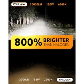 - Desempenho super brilhante: as lâmpadas OXILAM H11/H8/H9 apresentam 12 chips de alta qualidade por lâmpada, fornecendo uma impressionante saída de luz de 30.000 lúmens. Esse brilho é surpreendentemente 800% maior do que as lâmpadas halógenas tradicionais, garantindo maior visibilidade para uma condução noturna mais segura