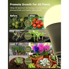 - LÂMPADA DE ESPECTRO COMPLETO: as lâmpadas de cultivo A19 apresentam um espectro completo de luz com um espectro de luz vermelho/azul semelhante ao sol l. Com luz l de 4000 K e CRI 95+, nossas lâmpadas de cultivo fornecem iluminação l e equilibrada que se integra bem a qualquer estética decorativa, exibindo seu jardim interno sem iluminação forte ou feia