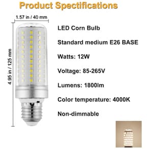 Lâmpadas LED RA RAYHOO 12W, equivalentes a 100-150 watts incandescentes, com base E26/E27. Cada lâmpada oferece 1800 lúmens de luz ultra brilhante em temperatura 4000K (branco natural). Produto não dimmável, fornecido em pacote com 2 unidades, ideal para uso residencial e comercial, proporcionando eficiência energética e excelente iluminação.