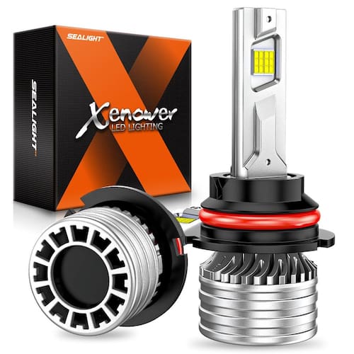 SEALIGHT Lâmpadas 9007 HB5, X4I 9007 HB5 Powersport Light com anel de bloqueio ajustável, ventilador de refrigeração, 55.000LM super brilhante, Plug and Play, farol de neblina, pacote com 2 - Diminuição do risco: lâmpadas SEALIGHT X4I 9007 equipadas com 12 chips CSP atualizados, brilho de 55000LM e branco frio 6500K. Dirija com mais segurança e conforto à noite. Iluminando seu caminho de casa - Instalação fácil em 5 minutos: Requisito de não polaridade, conecte e use diretamente. Nenhuma modificação no seu veículo. As lâmpadas SEALIGHT 9007 se encaixam perfeitamente em sua caixa de luz automotiva sem qualquer modificação - 99% de compatibilidade do veículo: as lâmpadas SEALIGHT X4I 9007 têm drivers atualizados integrados compatíveis com 99% dos veículos. Sem avisos de erro chato ou cintilação. Mas alguns veículos sensíveis podem precisar de um decodificador adicional - Feixe ideal para artesanato: Com anel de bloqueio ajustável de 360°, 9007 lâmpadas garantem foco A luz garante maior no lado do passageiro para iluminar os sinais de trânsito e mais baixo no lado do motorista para evitar cegos de outros motoristas, tornando a condução noturna segura - Vida útil de mais de 50.000 horas: o tubo de cobre de resfriamento duplo e o ventilador turbo de resfriamento de 20.000 RPM ajudam a diminuir a temperatura central, alcançando um equilíbrio perfeito de iluminação de longa duração e vida útil.