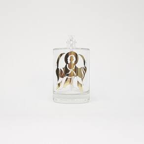 Especificações: 5,5 cm de diâmetro. Material Lamparina: Vidro de aproximadamente uma espessura de 3mm. Pintura do Anjo em dourado similar ao folhado a ouro. Pavio: Vidro eterno Sem Cheiro Marca: Velas Bistrot Classificação de risco do óleo não incluso : 1 Não inflamável Consumo de fluido: De 40 à 85ml a cada 10 horas, dependendo da regulagem da altura da chama.
