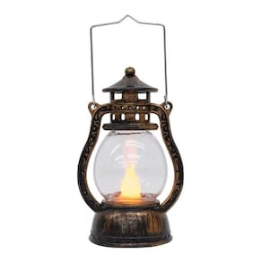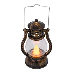 Luminária em forma da lamparina pequena com 12 cm de altura. Interior com enfeite em forma de 1 vela. Botão liga e desliga. Ao ligar, é como se a vela estivesse acesa. Funcionamento: 3 baterias LR44. Material: plástico Dimensões com a alça: 15cm de altura