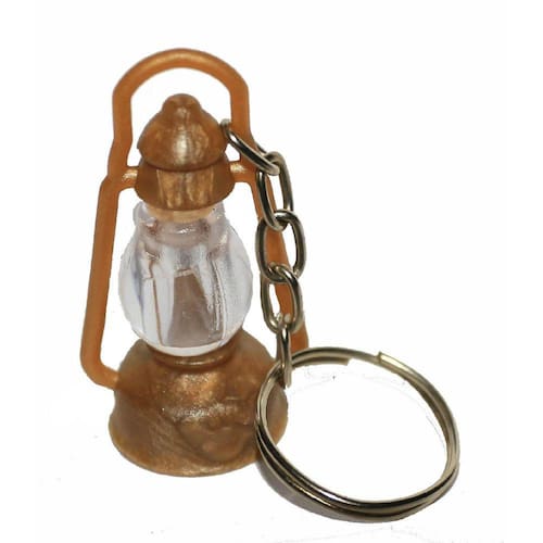 Recipiente porta óleo de unção, em formato de lamparina, sendo que contém um tampa para não vazar o óleo, que também é um chaveiro.