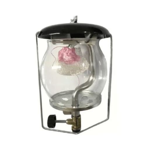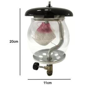Lampião para camping, pesca, iluminação em locais sem energia elétrica e outras aplicações. Ajuste de saída de gás por válvula, com registro incluso. Acompanha camisa para lampião.