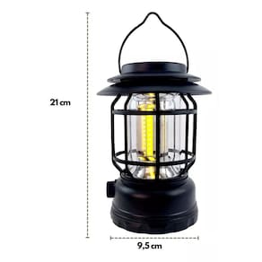 Lampião luminária Multiuso Led Recarregável Solar Ou Usb 5v :: DK Utilidades :: Apresenta: Lanterna Luminária Solar Led Recarregável Portátil Camping Pesca Barraca Acampamento Lampião Luz de acampamento retro, acabamento requintado, adicionar elementos clássicos à sua tenda. Lâmpada led premium, alto brilho, iluminação de 360 , suave e não deslumbrante. giratório, o brilho pode ser ajustado livremente, que pode atender às necessidades diferentes. Built-in 1200mah bateria de grande capacidade, baixo consumo de energia, longa resistência, pode ser como uma luz de emergência. Pequeno e leve, com gancho, fácil de suspender, muito adequado para acampar, caminhadas, pesca, etc. Marca: Não Informado Ean: 7807525280749