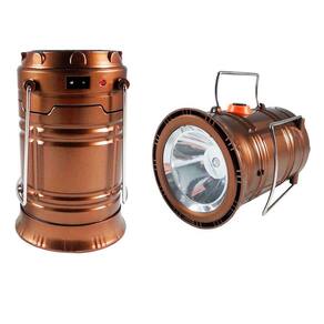 Lampião Solar Led USB Lanterna Bateria Recarregável Retrátil cor: BRONZE Lampião Solar retrátil, basta abrir para ele acender e pronto, a luz ira acender, iluminando o ambiente com uma luz branca e forte.Formada por seis leds de alta potência, a iluminação é forte e garantida. Use em seu Acampamento, na sua casa ou até mesmo em um momento de emergência.Características: Possui um design e sistema retrátil, podendo ocupar menos espaço. Suas alças podem ser baixadas e suspensas.Os 6 LEDs possuem baixo consumo de energia, alto brilho e grande vida útil. 3 Vias de Carregamento: Através de energia Solar, Tomada Bivolt 110V / 220v e 1 Via através de 3 Pilhas AAA interna Quando a Luz tornase fraca durante o uso, significa que as pilha precisam ser substituídaou a carga esta baixa, basta carregar por meio solar, Tomada ou a troca da Pilha. Para Funcionar Basta Abrir puxando para cima que a luz acendera automaticamente, para desligar, basta fechar o lampião que ele desligará. Saída USB para Recarga de Celular e Outros produtos. Material: ABSCuidados: Não aponte a luz para os olhos, pois pode causar danos à visão.O uso por crianças deve ser supervisona do por um adulto.Mantenha longe de chuva e umidade. Alimentação: SolarA Pilhas interna recarregávelTomada: Bivolt 110v / 220v Dimensões:Altura:Aberto:19 cm / Fechado: 13 cmCircunferência: 26 cmDiâmetro:8 cmAlças: Altura: 8 cm / Largura: 7 cm Itens Inclusos: 1 Lampião de led Retrátil1 Cabo para recarga