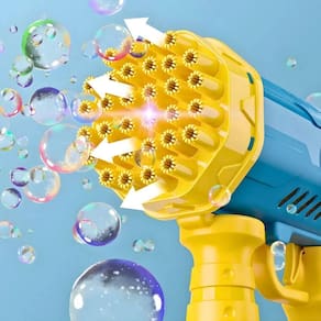 Com funcionamento automático e efeito de luz, este brinquedo garante diversão prolongada, incentivando a imaginação, a interação social e o desenvolvimento das habilidades motoras das crianças. Basta inserir a ponta da pistola no líquido para bolhas e pressionar o gatilho para liberar uma chuva de bolhas em segundos.
