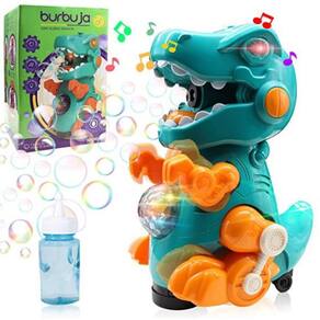 Incrível máquina de bolhas de dinossauro 4 em 1 A máquina de bolhas de dinossauro é um soprador de bolhas que integra caminhada inteligente de 180 graus, três luzes projetadas, sons de dinossauro realistas e 5 músicas aleatórias. Para que as crianças possam ter experiência multissensorial e diversão, seja em uma festa barulhenta ou em um ambiente escuro ao ar livre.