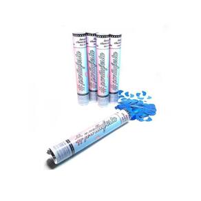 Esse produto é ideal para chás de revelação, trazendo um toque especial para esse momento tão especial. Com um mecanismo compressor de ar comprimido, ele lança confetes prateados de papel laminado, trazendo um brilho encantador. A cor azul dos confetes é perfeita para anunciar a chegada de um menino.