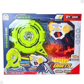 Lança Dardos Arminha X Darts P1 Tiro ao Alvo1102 - BraskitUm super lançador que dispara dardos de espumas, ágil, rápido e preciso! Fácil de usar possibilita a socialização entre a criançadas na hora da brincadeira.Acompanha 10 dardos, 01 alvo, 01 suporte para dardos que pode ser utilizado no pulso ou em um cinto, assim a brincadeira vai ficar ainda mais emocionante e eletrizante!- Diversão GarantidaCARACTERÍSTICAS TÉCNICAS:Conteúdo da Embalagem: 1 X Darts P-1 Tiro ao alvoDimensões Aproximadas do Produto: 6 cm x 31 cm x 40 cm (Altura x Largura x Comprimento/Profundidade)Dimensões Aproximadas da Embalagem: 8 cm x 33 cm x 42 cm (Altura x Largura x Comprimento/Profundidade)Material/Composição: ABS , Polipropileno e EVAIdade Mínima Recomendada: A partir de 8 anosParticipantes: A partir de 1 pessoaAlimentação: Não se aplicaMarca: BraskitOutras informações: As cores podem variar entre as imagens mostradas acima e o produto. Imagens meramente ilustrativas.