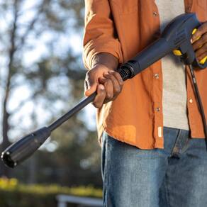 Lança - Jato Leque Regulável para Lavadoras de Alta Pressão K2 I K3 com regulagem de pressão, variando desde o mínimo, para aplicar detergente, até a máxima oferecida pela máquina.