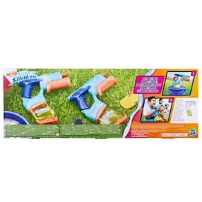 O kit Nerf Super Soaker Dunk-Fill vem com 2 lançadores de água com tanques fáceis de encher. O design inovativo do tanque ajuda na hora de recarregar de água. É fácil de encher. Basta mergulhar para encher instantaneamente de água! Cada tanque transparente possui uma capacidade 325 ml de água. Basta mergulhar o tanque na água e correr para a aventura. Basta puxar o carregador para lançar água. Os lançadores de água Nerf Super Soaker são uma excelente atividade de água ao ar livre para todos que gostam de brincar com água no quintal.
