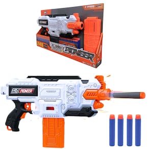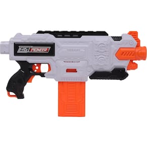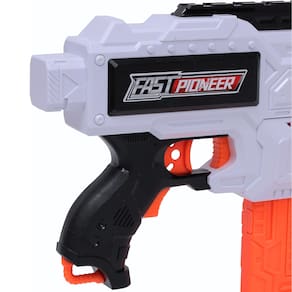 · Design ergonômico: Alça reforçada e gatilho leve que proporcionam conforto e firmeza ao segurar, mesmo durante longas sessões de brincadeira.