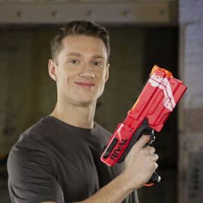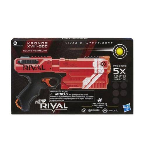 Lançador de dardos Nerf Rival Kronos - Hasbro - 4233 O Lançador de Dardos Hasbro Nerf Rival Kronos leva muita ação para o seu time Até 5 projéteis podem ser inseridos na câmara de recarga, o lançador deve ser preparado com o mecanismo de mola e a alavanca de disparo deve ser ativada para lançar um projétil a até 27 m/s de velocidade. Ele conta com uma trava para evitar lançamentos acidentais, um indicador para mostrar quando o lançador estiver preparado e um trilho que pode ser personalizado com equipamentos e acessórios da Nerf Rival (vendidos separadamente). Os integrantes do time podem sentir toda a intensidade das aventuras Nerf Rival com o lançador Kronos Cor: Vermelho Idade mínima recomendada: 14 anos. Contém: 1 lançador, 5 projéteis e instruções.