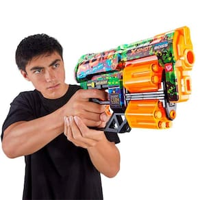 Lançador de Dardos - X-Shot Skins - Dread - KO - Candide: prepare-se para a ação com os novos lançadores X-Shot Skins com design exclusivo e personalizado. O Lançador X-Shot Skins Dread tem uma capacidade de 12 dardos e os canos giratórios duplos do Dread significam que você está carregado para se divertir e pode atirar até 20m de distância. Acompanha 12 dardos de espuma. Detalhes: • Capacidade de 12 dardos • Canos giratórios duplos para mais lançamentos • Pode disparar dardos em até 20m de distância • Acompanha 12 dardos de espuma • Estampa exclusiva para colecionar Informações: • Produto: Lançador X-Shot Skins Dread K.O. • Marca: Candide Brinquedos • Coleção: X-Shot • Linha: X-Shot Skins • Tipo: Lançador de Dardos • Categoria: Lançadores Infantis • Conteúdo: - 01 lançador - 12 dardos de espuma • Recomendação: para crianças a partir de 08 anos de idade Especificações: • Referência: 5611 • Código de Barras: 7897500556112 • Embalagem (C x A x L): 42 x 27 x 07 cm • Embalagem (Kg): 0.625 kg • Material / Composição: - Lançador: Plástico - Dardos: Espuma • Registro: 005070/2022 • Certificado: Órgãos Autorizados - OCP´S (Organismos de Certificação de Produtos) Benefícios de brincar: • Eleva a autoestima • Exercita a memória • Estimula o raciocínio • Exercita o imaginário • Desenvolve a criatividade • Desenvolve percepção visual • Desperta a atenção e curiosidade • Desenvolvimento neuropsicológico • Estimula habilidades motoras básicas • Incentiva a comunicação e linguagem • Desenvolve aspectos emocionais e afetivo • Estimula o reconhecimento de formas e cores Aviso: • As imagens são meramente ilustrativas • Os pesos, tamanhos e medidas são aproximados • As cores e estampas dos produtos podem ter variações • As informações são de responsabilidade do fabricante ou fornecedor