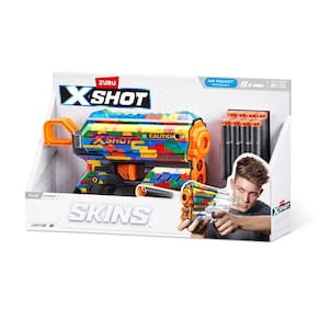 Vá direto para a batalha com a capacidade de dardo único do lançador X-Shot Skins Flux e armazenamento frontal de 2 dardos. O Flux eliminará seus inimigos e pode atingir alvos a até 27m de distância. O X-Shot Skins Flux vem em 6 skins com estampas exclusivas e de alta qualidade para selecionar e colecionar e vem com 8 dardos de espuma. A brincadeira será muito mais divertida com o X-Shot Flux Skins!