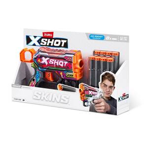 O Lançador X-Shot Skins Menace tem potência suficiente para enfrentar alvos a 27m de distância! Fácil de recarregar, vem com armazenamento de dardo inferior para uma recarga rápida no meio da batalha. O lançador X-Shot Skins Menace vem em 7 skins com estampas exclusivas e de alta qualidade para selecionar e colecionar e vem com 8 dardos de espuma. O lançador é compatível com os principais dardos do mercado. A brincadeira será muito mais divertida com o X-Shot Menace Skins!