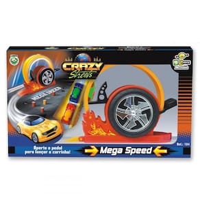 Lançador Mega Speed com 3 Carrinhos BS Toys, diversão garantida para criançada, e só apertar o pedal e disparar o carrinho.