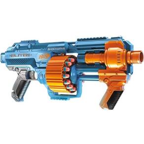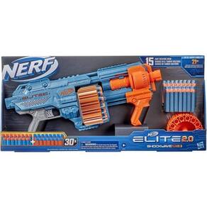 Lançador Nerf Elite Surgefire 2.0 Shockwave RD-15 - Hasbro A aventura sobe de nível com os lançadores Nerf Elite 2.0, que apresentam recursos de personalização integrados para que se possa utilizar acessórios e sair na frente na aventura Nerf. É hora de montar seu próprio Lançador Elite 2.0 para otimizar sua estratégia de jogo e trazer desempenho tático e flexibilidade a todas as aventuras! O Lançador Nerf Elite 2.0 Shockwave RD-15 é personalizável, com 3 trilhos táticos, encaixe para tubo frontal e encaixe para apoio. Este Lançador de bombeamento possui tambor giratório para 15 dardos. Basta puxar o carregador e apertar a alavanca de disparo para lançar 1 dardo, ou manter a alavanca de disparo pressionada e mover o carregador para lançamentos sucessivos de 15 dardos.