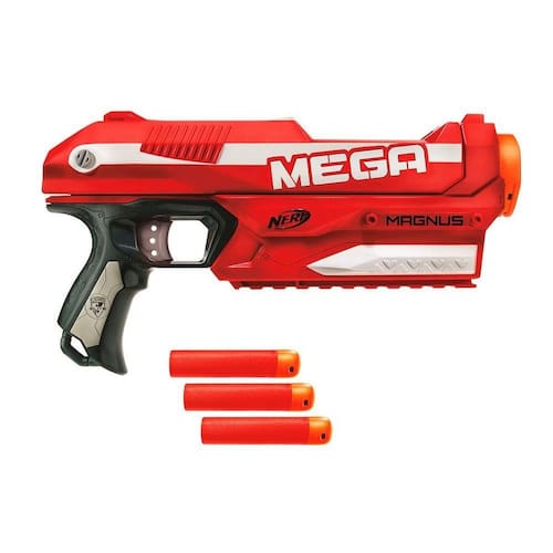 Se prepare para entrar em mega batalhas com o lançador de dardos Mega Magnus, que possui a mesma performance dos outros lançadores da linha Nerf Elite, mas vem com mega dardos para serem lançados numa distancia ainda maior. Com ele, você vai dominar todas as batalhas e acertar os alvos que quiser!