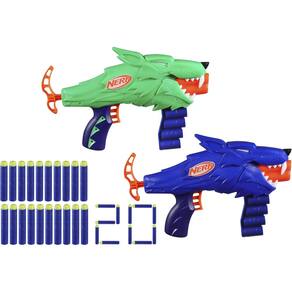 LANÇADOR NERF WILD WOLFPACK: O conjunto Nerf Wild Wolfpack vem com 2 lançadores em plástico durável com design incrível de escorpiões nas cores azul e verde. É um brinquedo ideal para brincadeiras criativas de combate com dardos de espuma. FÁCIL DE USAR PARA CRIANÇAS: Estes lançadores leves e ergonômicos foram pensados para caber confortavelmente em mãos pequenas, permitindo que as crianças segurem com firmeza e aprendam a brincar com facilidade em partidas cheias de ação. DISPAROS SIMPLES E RÁPIDOS: Basta inserir os dardos no dispositivo, puxar a alavanca e lançar com precisão. Um brinquedo lança dardos perfeito para que as crianças treinem mira, coordenação motora e habilidade em jogos de combate. INCLUI 20 DARDOS NERF ELITE: O conjunto de lança-dardos vem pronto para a ação com 20 dardos de espuma oficiais, macios e flexíveis, garantindo recargas rápidas e diversão segura em qualquer ambiente, dentro ou fora de casa. BRINQUEDOS PARA MENINOS E MENINAS A PARTIR DOS 6 ANOS: O conjunto de lançadores Nerf Wild Wolfpack ajuda a desenvolver a habilidade das crianças, encoraja a atividade física e a estimula a imaginação e a interação social. LANÇADORES NERF PARA UM DIA DAS CRIANÇAS CHEIO DE AÇÃO: Os lançadores Nerf são brinquedos para o dia das crianças que unem adrenalina, imaginação e muitas risadas. Um presente que vai surpreender e transformar essa data em um momento inesquecível.
