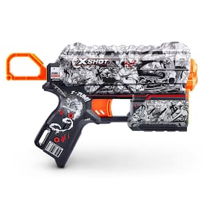 Vá direto para a batalha com a capacidade de dardo único do lançador X-Shot Skins Flux e armazenamento frontal de 2 dardos. O Flux eliminará seus inimigos e pode atingir alvos a até 27m de distância. O X-Shot Skins Flux vem em 6 skins com estampas exclusivas e de alta qualidade para selecionar e colecionar e vem com 8 dardos de espuma. A brincadeira será muito mais divertida com o X-Shot Flux Skins!