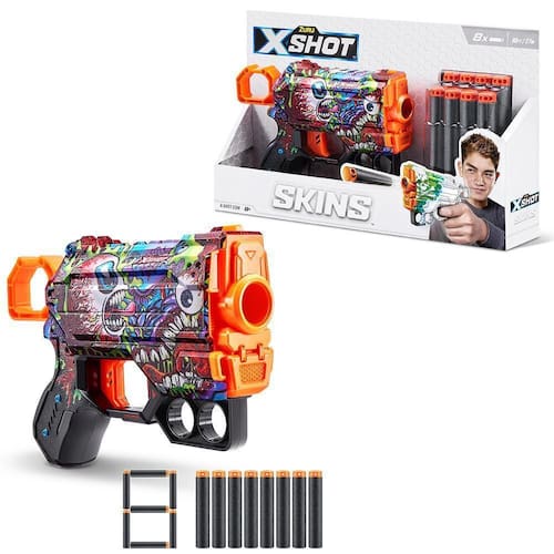 O Lançador X-Shot Skins Menace tem potência suficiente para enfrentar alvos a 27m de distância Fácil de recarregar, vem com armazenamento de dardo inferior para uma recarga rápida no meio da batalha. O lançador X-Shot Skins Menace vem em 7 skins com estampas exclusivas e de alta qualidade para selecionar e colecionar e vem com 8 dardos de espuma. O lançador é compatível com os principais dardos do mercado. A brincadeira será muito mais divertida com o X-Shot Menace Skins Homologação Inmetro: IP-BRI-2780/2021-01 Ean: 7897500556204