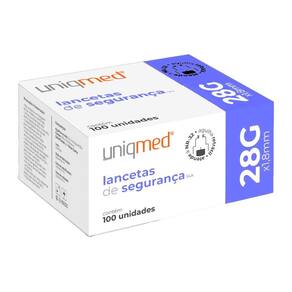 Lancetas de segurança 1,8mm x 28g sla kit 200un uniqmed Tamanho: 28g Lancetas de segurança uniqmed sla - 2 caixas com 100 unidades As lancetas de segurança uniqmed sla foram desenvolvidas para proporcionar máximo conforto e segurança na coleta de sangue capilar. Com agulha retrátil, evitam a reutilização e garantem um procedimento higiênico e confiável, em conformidade com as normas da nr-32. Benefícios e características Agulha retrátil: maior segurança e prevenção de acidentes. Uso único e descartável: impede a reutilização, reduzindo riscos de contaminação. Latex free: minimiza reações alérgicas. Esterilização por raios gama: garante a segurança microbiológica do produto. Validade de 5 anos: maior durabilidade e confiabilidade. Indicação Indicadas para coleta de sangue capilar, as lancetas uniqmed sla são ideais para ambientes hospitalares, laboratórios e , oferecendo praticidade e segurança no manuseio. A caixa com 100 unidades é uma excelente opção para quem busca um produto de qualidade, seguro e eficiente para coletas com conforto e proteção. Marca: Não Informado