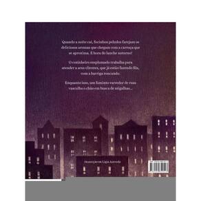 Um livro ilustrado sensível e fantástico sobre lanchinhos da madrugada, animais noturnos e um ato de generosidade que pode acontecer quando menos se espera. Quando a noite cai, focinhos peludos farejam os deliciosos aromas que chegam com a carroça de quitutes que se aproxima. É hora do lanche noturno! O cozinheiro emplumado é uma coruja carismática, que trabalha para atender a seus clientes: morcegos, mariposas, gambás, raposas, entre outros animais noturnos. Todos já estão fazendo fila, com a barriga roncando. Enquanto isso, um ratinho faminto varre as ruas e vasculha o chão em busca de migalhas… Mas, já quase ao amanhecer, um comovente ato de generosidade e empatia pode mudar a noite desse pequeno roedor. Com ilustrações repletas de detalhes, os premiados Eric Fan e Dena Seiferling se juntam para narrar uma história um tanto quanto fantástica e surreal sobre seres que sequer vemos na cidade enquanto estamos dormindo à noite. E, embora pareça distante, a realidade deles é bem semelhante à nossa, especialmente na disparidade social e desigualdade de distribuição de alimentos, temas que circundam a obra de maneira delicada e emocionante. Indicado para leitores a partir de 4 anos.