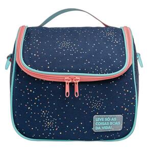 Feita em polímero poliéster, essa lancheira possui um formato de 22 x 18,5 x 14,5cm Largura x altura x profundidade , o que a torna compacta e fácil de carregar. Com sua cor azul com bolinhas, ela é perfeita para as meninas que gostam de estilo e praticidade.
