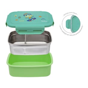 Características: Volume de 600ml. Divisória ajustável e removível. Tampa com vedação em silicone antivazamento. Adequado para alimentos quentes e frios.